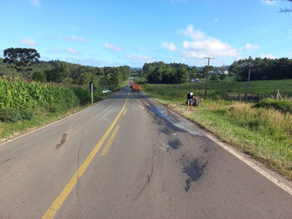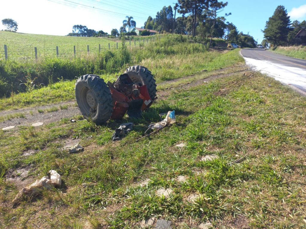 ACIDENTE NA BR 153 EM MALLET, ENVOLVENDO UM TRATOR MASSEY E UM VEÍCULO DE PASSEIO ACABA COM DOIS FERIDOS