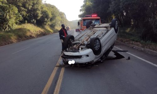 O condutor de um Fox da cidade de Schroeder/SC, perdeu o controle da direção e capotou na rodovia BR-153, em General Carneiro. O acidente ocorreu por volta das 06:00 horas da manhã deste domingo (25).