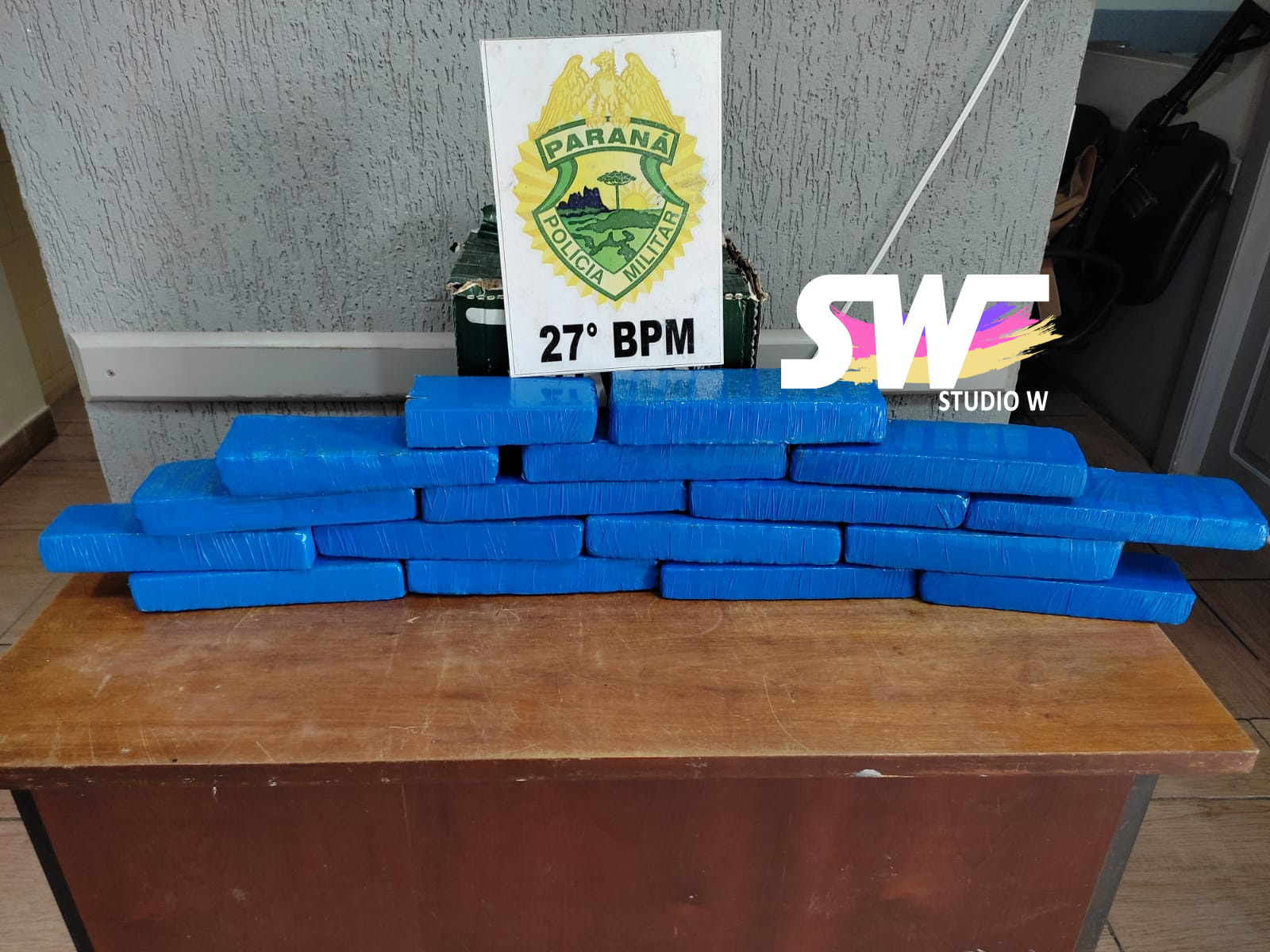 No veiculo estavam dois homens, depois de identificados foi realizado a revista pessoal e nada de ilícito foi encontrado com os suspeitos.  Já em busca no interior do veiculo, atrás do banco do passageiro foi encontrado uma caixa de papelão e no seu interior havia 17 tabletes de substância análoga à maconha.