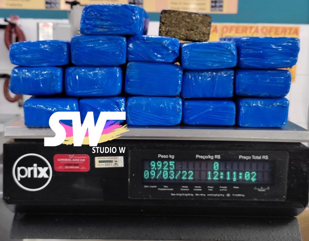 Dos tabletes, 16 inteiros e 1 cortado ao meio, posteriormente pesados totalizou 09 quilos e 925 gramas.