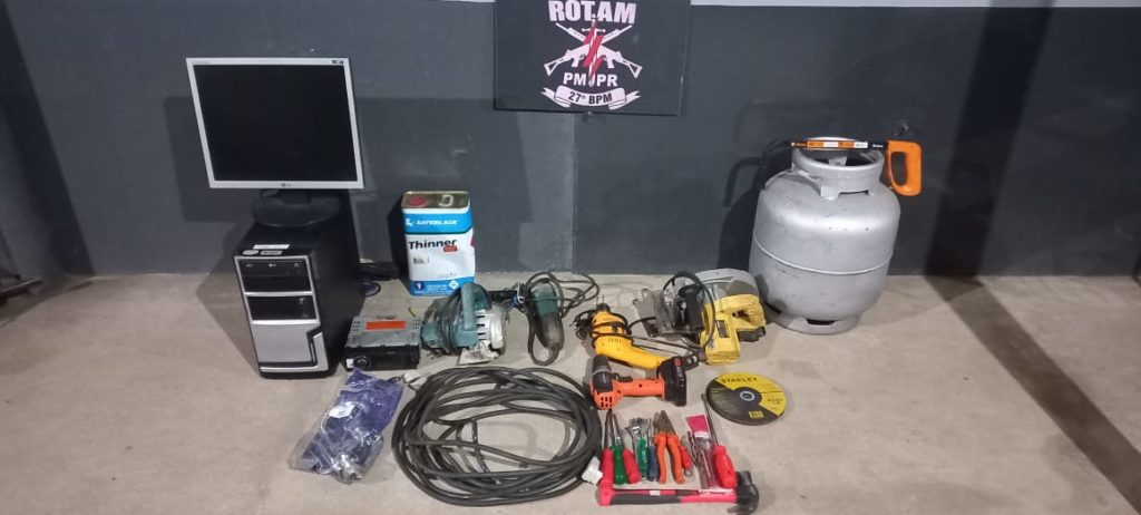 Foram recuperados os objetos relatados pelo vigia e ainda outros objetos oriundos de outros furtos praticados pelo rapaz, o qual apresentou uma porta de vidro temperado, um rádio veicular dos quais teria furtado de uma oficina mecânica.