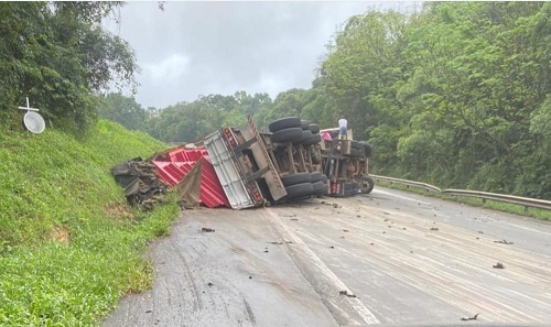Carreta tombo na BR-476 entre União da Vitória e São Mateus do Sul e deixa trânsito comprometido