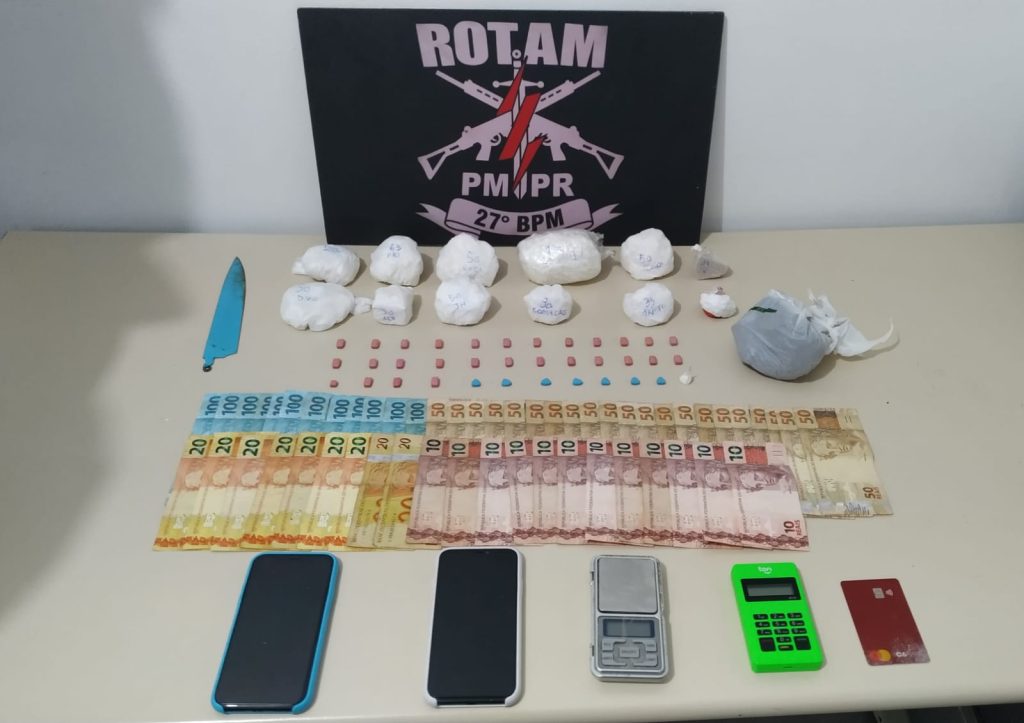 Ao perceber a presença policial, o motorista correu para dentro do local com algo em suas mãos, sendo abordado pela polícia. No local, o rapaz foi abordado juntamente com outros dois moradores. Durante buscas, foram encontrados atrás de uma máquina de lavar roupas, uma sacola plástica contendo 593 gramas de cocaína e 23 gramas de crack, sendo que em cada bucha estava anotado com nomes ou apelidos.