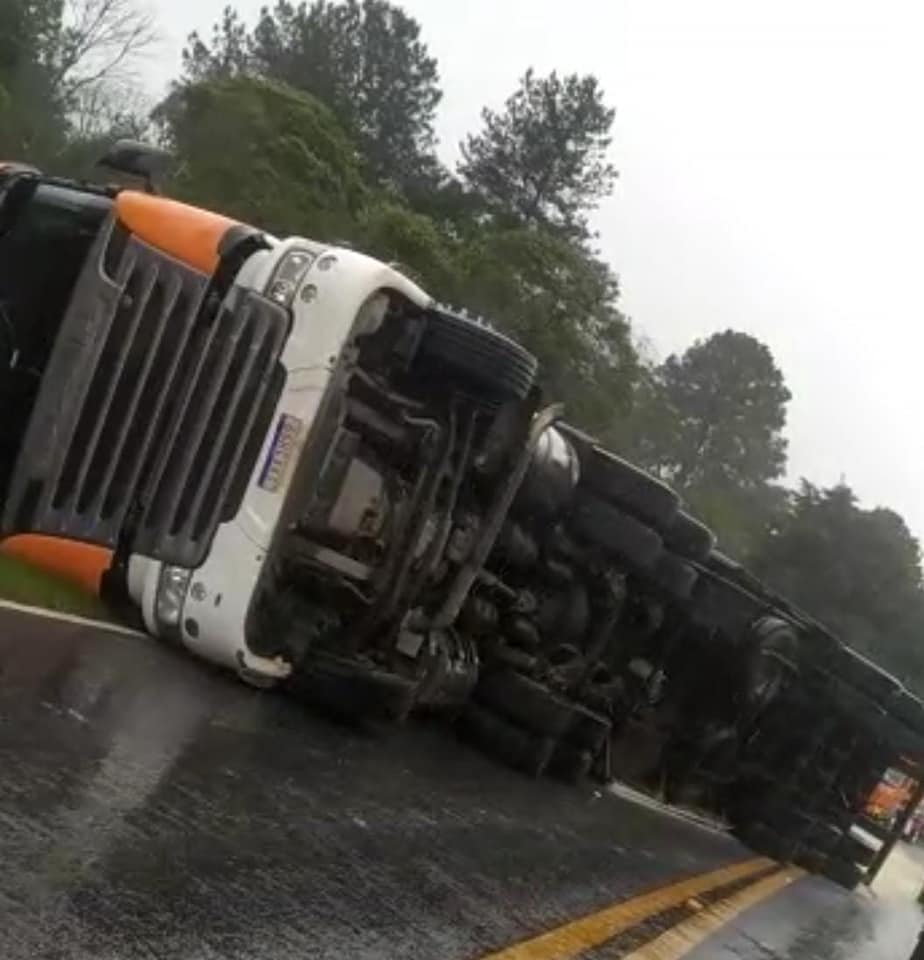 No início da tarde desta terça-feira, dia 06 de setembro, uma carreta com placas do Mercosul carregada com farelo, acabou tombando na rodovia BR 153 próximo à ponte do Rio Claro na região conhecida como “Curva das Águas”, no km 395.