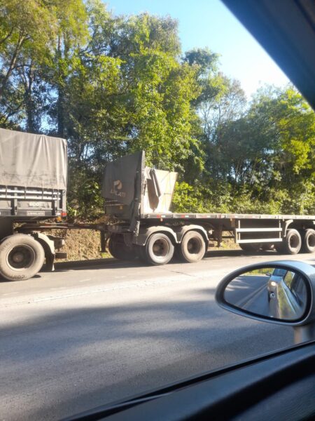 CAMINHÃO TOMBA NA BR-153 ENTRE UNIÃO DA VITÓRIA E GENERAL CARNEIRO