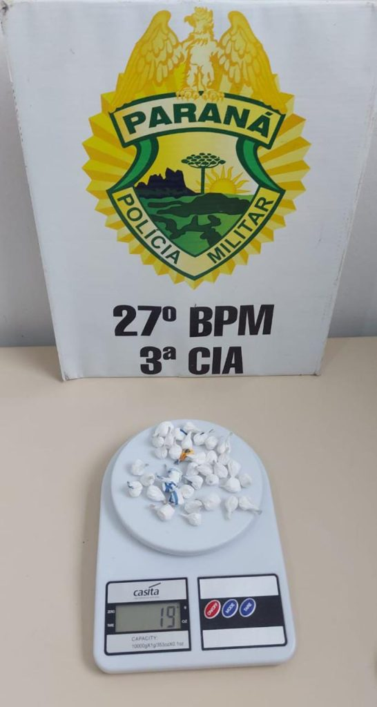 A equipe da Polícia Militar de São Mateus do Sul estava em patrulhamento no bairro Vila Nova por volta das 09h30min dessa sexta-feira (23), momento que abordou um homem suspeito, que ao perceber a presença policial tentou apressar o passo, como também ser indicado em denúncia prévia de tráfico de drogas.