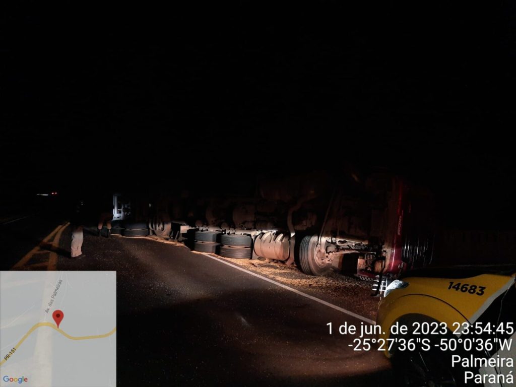 A equipe da Polícia Rodoviária Estadual atendeu um acidente tipo tombamento na PR-151 km 386 no Município de Palmeira-PR durante a madrugada desta sexta-feira (02).