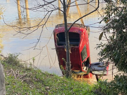 Segundo o Major, o veículo foi encontrado a cinco metros de profundidade e aproximadamente seis metros da margem do rio, com as rodas para cima. O mergulhador da corporação levou cerca de uma hora para localizar o veículo e, logo no primeiro contato, o Sargento Carvalho encontrou um corpo.O carro foi então içado até a margem utilizando o guincho do caminhão ABTR, e em seguida, um munck finalizou o trabalho de remoção.