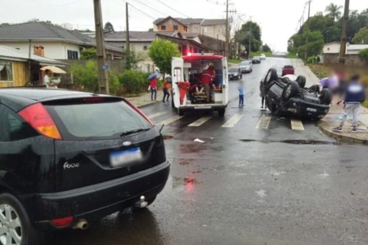 Bombeiros de São Mateus do Sul prestaram atendimento a ocorrência, em que três vítimas foram levadas ao Pronto Atendimento Municipal com ferimentos leves, sendo o condutor e duas ocupantes, do veículo que capotou. A condutora do veículo Focus não se feriu e recusou atendimento.