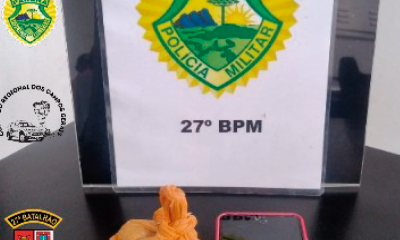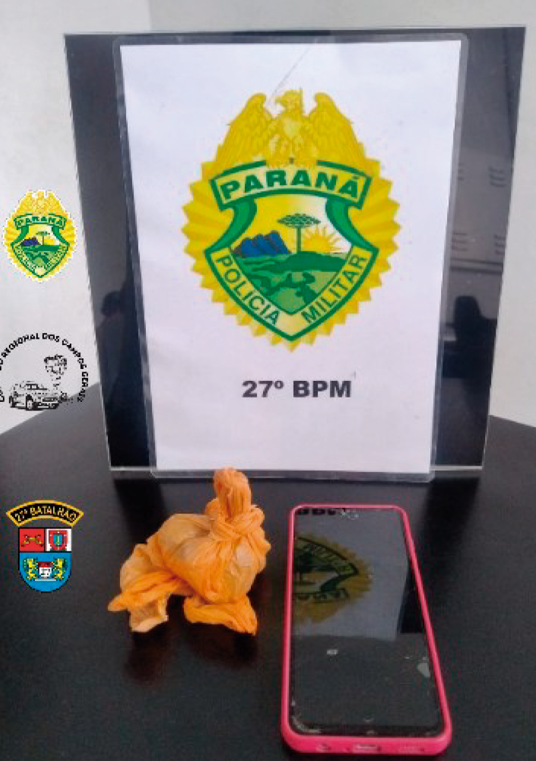 A equipe da Polícia Militar de São Mateus do Sul estava em patrulhamento pela região central, avistou um individuo que já esteve preso pelo crime de tráfico de drogas e utilizaria tornozeleira eletrônica, tirar algo do bolso e jogar próximo de um meio-fio.
