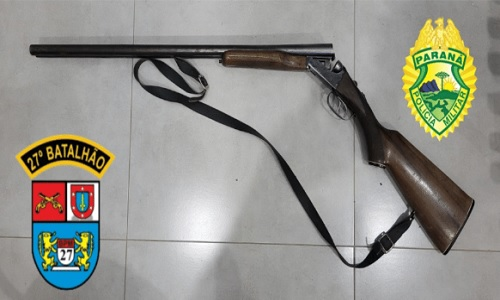 Após averiguar o local, uma arma foi localizada e apreendida. Diante da situação o autor recebeu voz de prisão e foi conduzido até a delegacia para providências cabíveis.