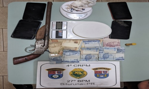 Uma ação conjunta entre a Polícia Militar e a Polícia Civil resultou na prisão de um suspeito por tráfico de drogas e porte ilegal de arma de fogo na manhã desta segunda-feira (26), na zona rural de Bituruna.