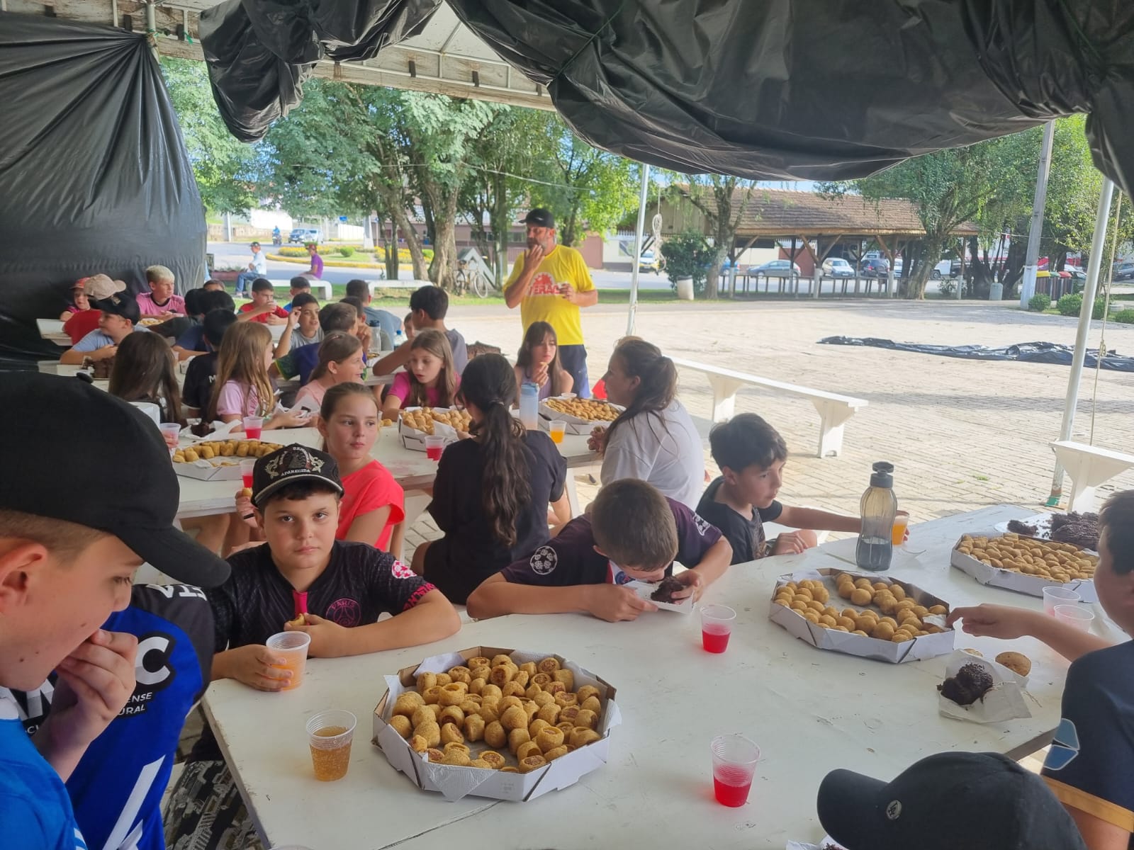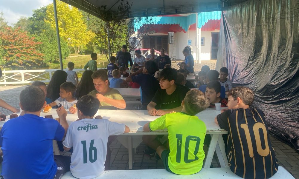 Além de toda a infraestrutura montada para receber nossas crianças, elas puderam se deliciar com lanches, na janta o tradicional cachorro quente e pela manhã aquele café saboroso.