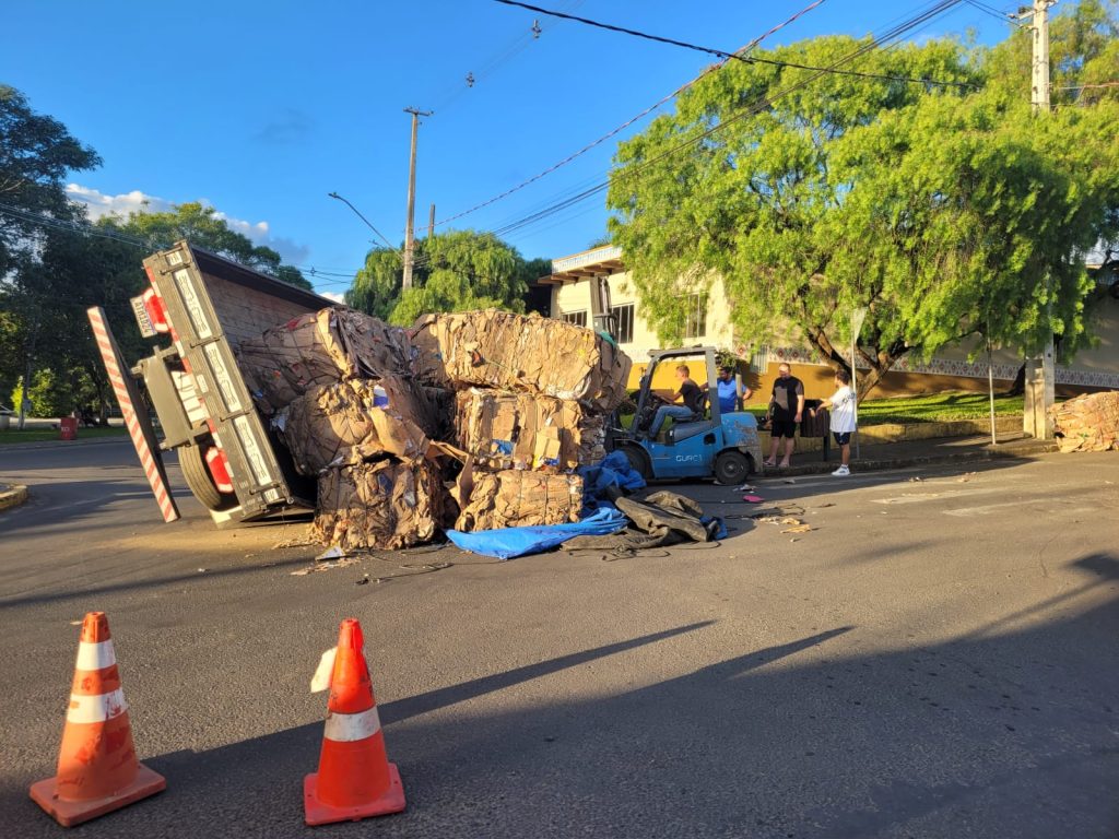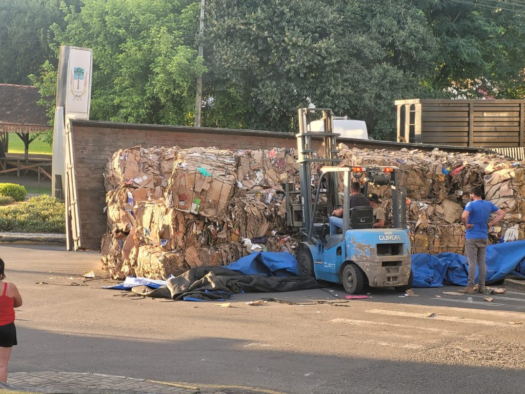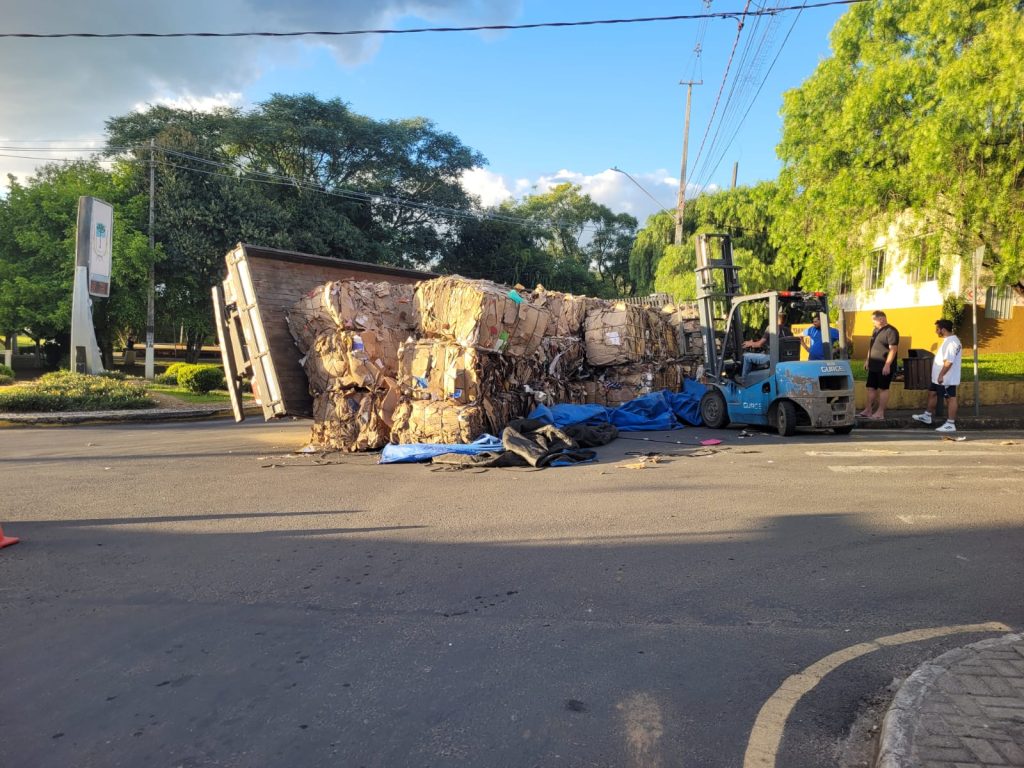 Um caminhão carregado com material reciclável tombou no final da tarde desta quinta-feira, dia 22 de janeiro, na rotatória da Avenida Barão do Rio Branco, nas proximidades da Rodoviária Municipal de Mallet. O acidente ocorreu por volta das 17h45.