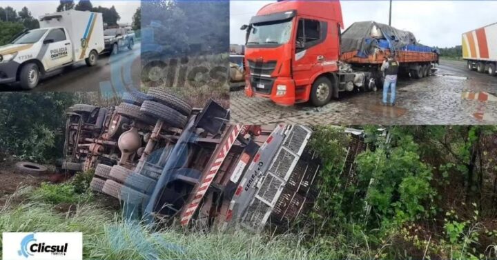 Dois caminhões se envolvem em acidente e saem da pista na Serra do Leão