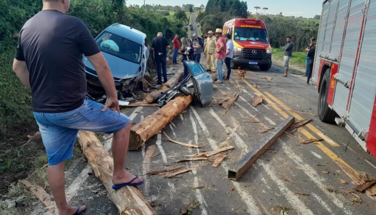 Grave acidente entre automóvel e caminhão em Irati deixa motorista preso no veículo