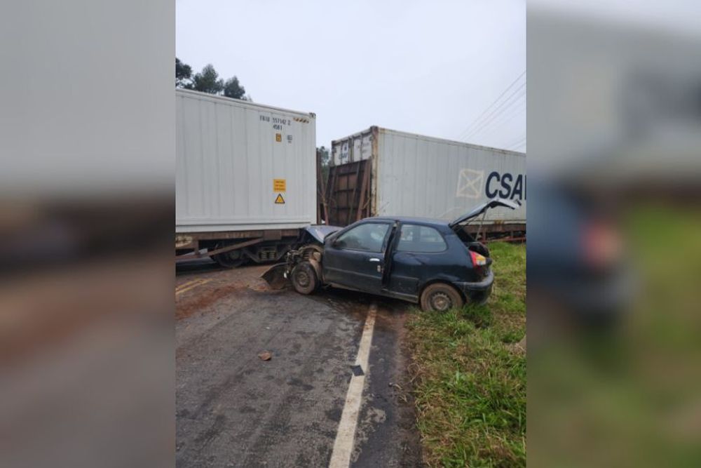 Carro colide com trem e deixa três feridos em Teixeira Soares