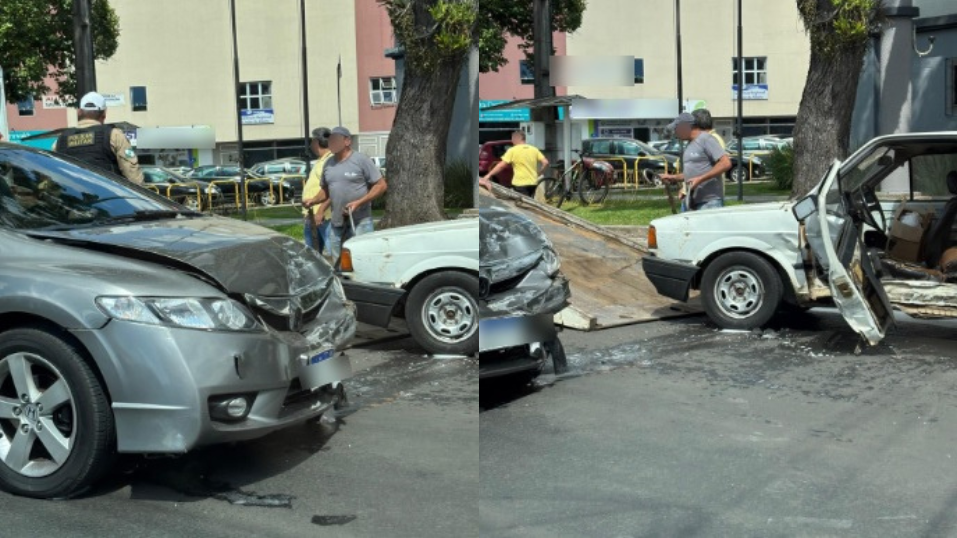 Uma colisão envolveu um Honda Civic e um Gol no cruzamento das ruas Quintino Bocaiuva e Marechal Floriano Peixoto, no centro de União da Vitória na tarde desta quinta-feira (26).
