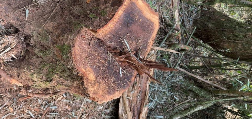 Polícia Ambiental atendeu a denúncia anônima de desmatamento de árvores nativas dentro do Parque Estadual São Francisco, na comunidade Arroio Grande , linha Pombas na cidade de Prudentópolis nesta quar-feira (07).