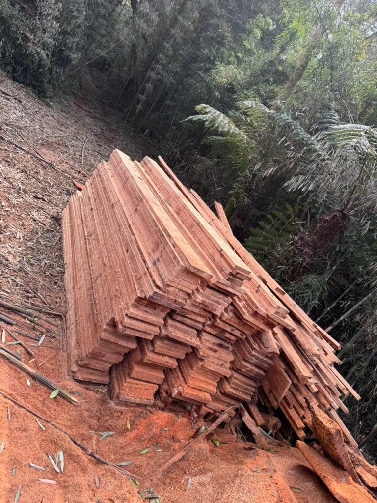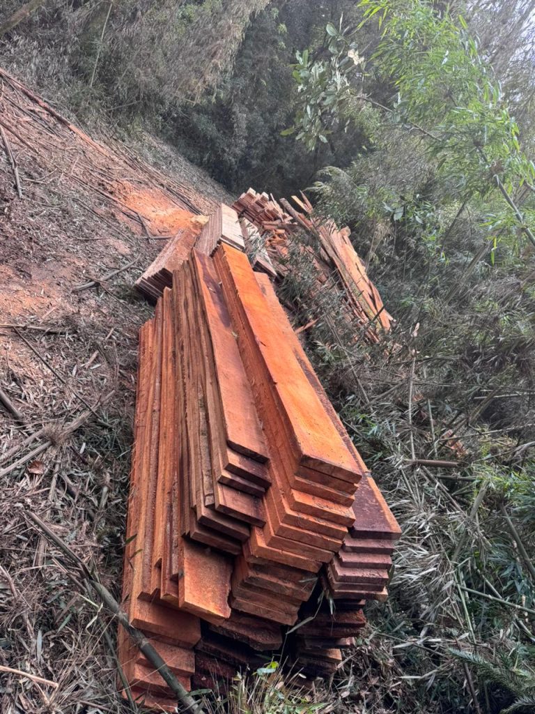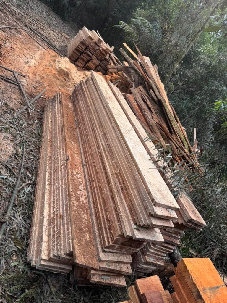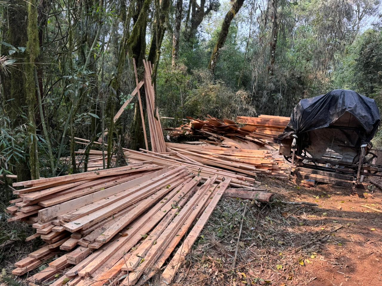 Ainda no local foi encontrado uma estrutura metálica de uma serraria Móvel (sem motor ) e uma corrente com ganchos usados para transporte de toras, além de madeiras serradas de Pinheiro Araucária totalizando 11,14 metros cúbicos e 1,98 metros cúbicos de Imbuia (tábuas, pranchas, mourões e ripas).