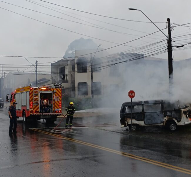 Incêndio em Kombi mobiliza Corpo de Bombeiros em Porto União