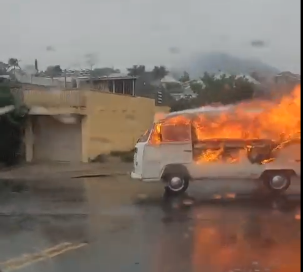 O motorista conseguiu sair do veículo sem ferimentos, mas as chamas rapidamente se alastraram, consumindo grande parte da Kombi. O Corpo de Bombeiros foi acionado para controlar o fogo e evitar maiores danos.