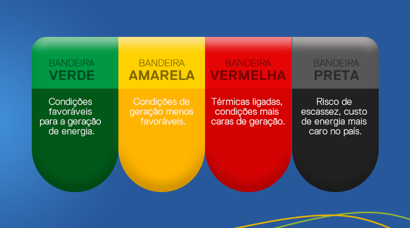 Criadas em 2015 pela Aneel, as bandeiras tarifárias refletem os custos variáveis da geração de energia elétrica. Divididas em níveis, as bandeiras indicam quanto está custando para o Sistema Interligado Nacional (SIN) gerar a energia usada nas casas, em estabelecimentos comerciais e nas indústrias.