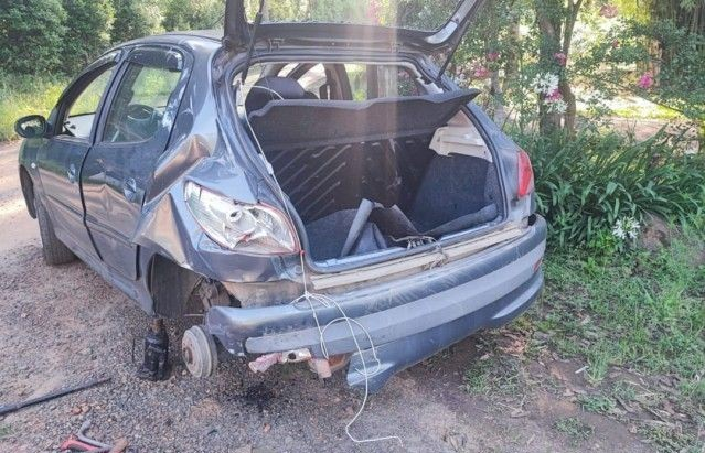 No local a equipe encontrou dois veículos, um Crevrolet S10 LTZ azul com placas de São Paulo e um automóvel Peugeot 207 de cor cinza.