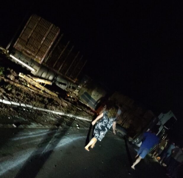 Na noite desta sexta-feira, 06 de dezembro, o tombamento de um carreta carregada com madeira deixou o trânsito em meia pista na BR-153 bem próximo ao trevo de acesso a Bituruna.