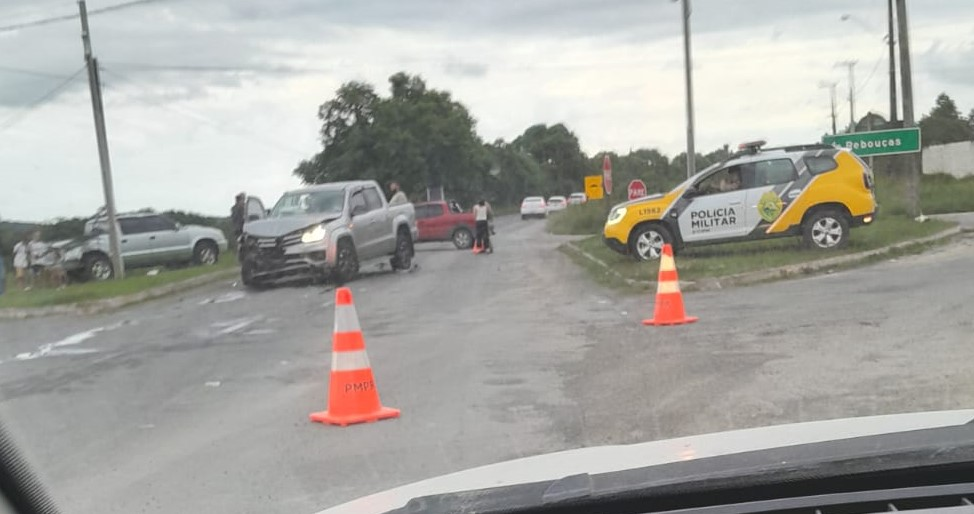 Um acidente de trânsito foi registrado no trevo do meio, na BR-153, em Rebouças por volta das 18 horas a tarde desta sexta-feira (13). O incidente envolveu três veículos: uma Chevrolet S10 prata, uma Volkswagen Amarok prata e um Toyota Corolla branco.