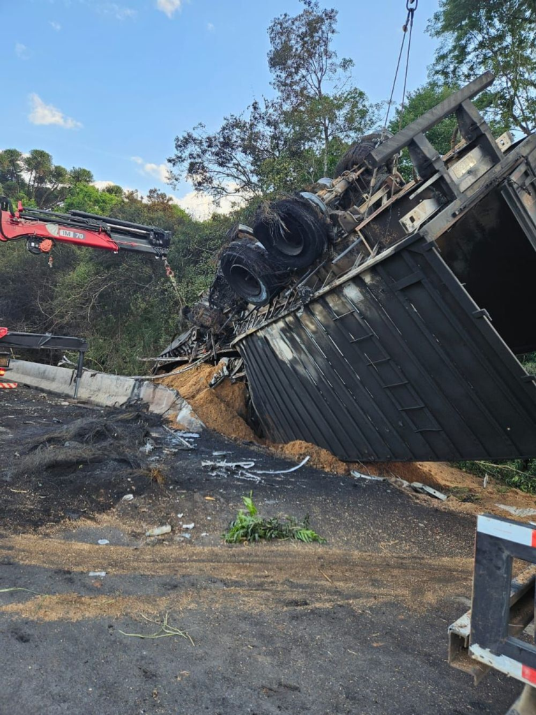 Um grave acidente envolvendo caminhão carregado com 32 toneladas de serragem vindo a perder o controle do veículo e tombou e pegou fogo nesta tarde 06/01, por volta das 12h13 nas proximidades da Cervejaria Ambev na BR-376 km 463 em Ponta Grossa