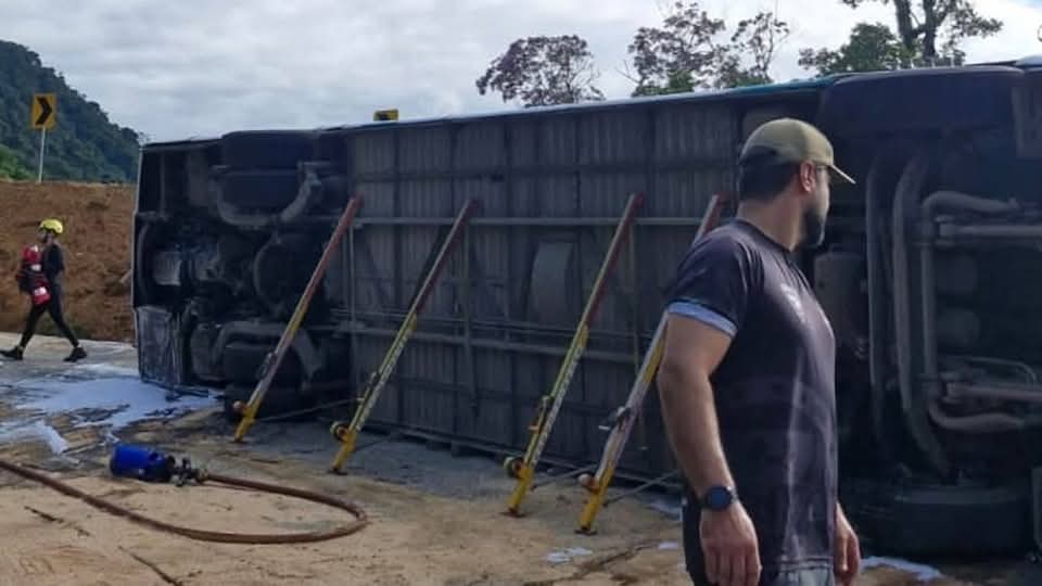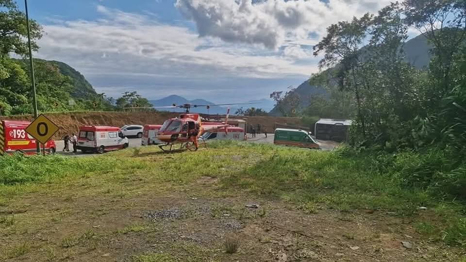 Na manhã deste domingo (26), um grave acidente envolvendo um ônibus de fretamento ocorreu na rodovia SC-418, na Serra Dona Francisca, em Santa Catarina