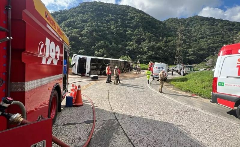 O veículo, que transportava 46 passageiros, a maioria adolescentes, seguia de Canoinhas para o parque Beto Carrero World, em Penha, quando tombou na altura do quilômetro 16+650, por volta das 7h.