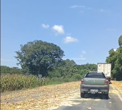 Na manhã desta terça-feira, 12, uma colisão entre duas carretas foi registrada no km 309 da BR-476, em São Mateus do Sul. Um dos veículos estava carregado com milho, e a carga ficou espalhada na pista após o impacto.
