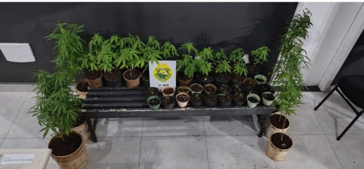 A equipe ROTAM de Cruz Machado recebeu uma denúncia anônima via 181 sobre um homem que estaria cultivando maconha no pátio de sua residência na localidade Linha Palmeirinha e pretendia vender a droga após a colheita.