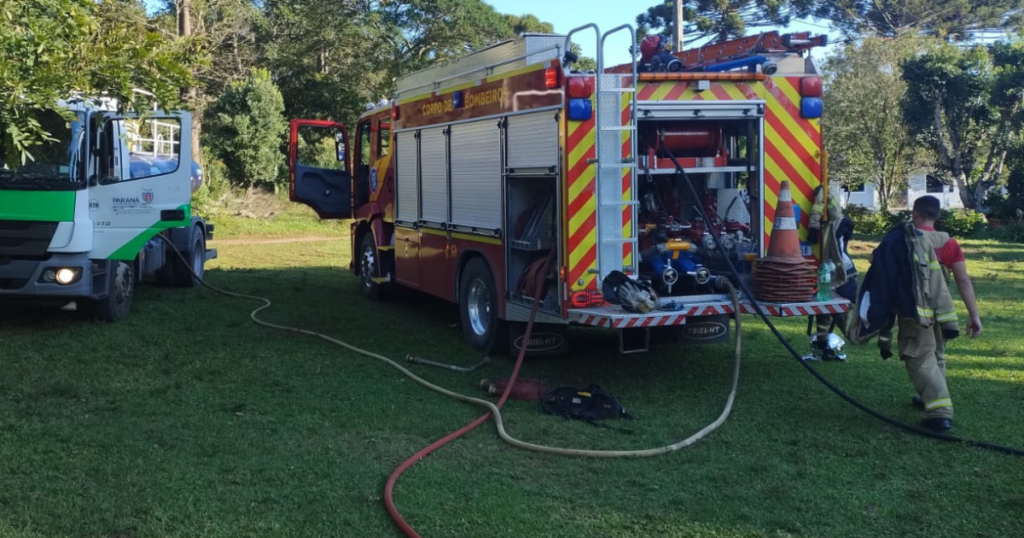 Para o atendimento, o Corpo de Bombeiros de São Mateus do Sul enviou duas viaturas e contou com o apoio de um caminhão pipa da Defesa Civil, que foi essencial para o controle do incêndio.