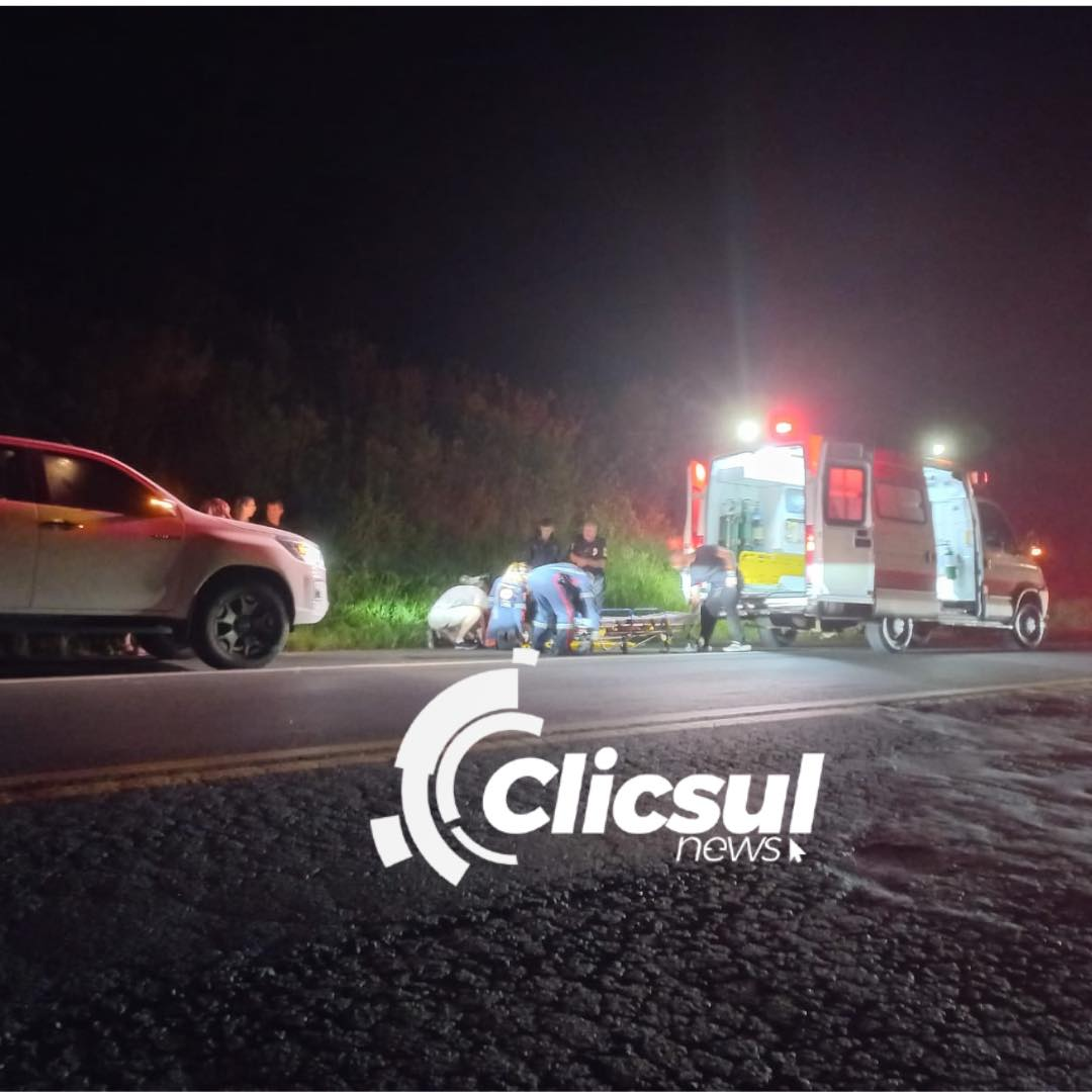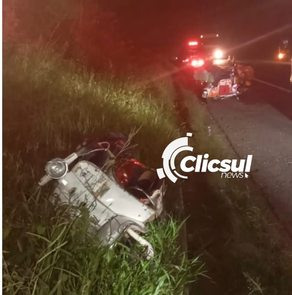 Três motos e um veículo se envolvem em grave acidente após colidirem com barra de ferro na pista da BR-476 em São Mateus do Sul