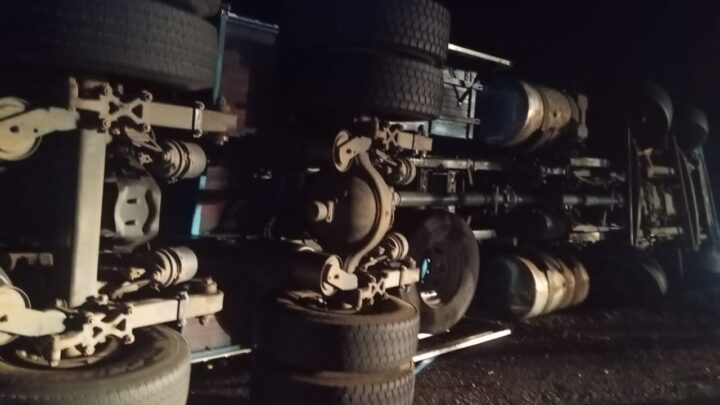Caminhão carregado de verduras tomba na BR-153 em General Carneiro