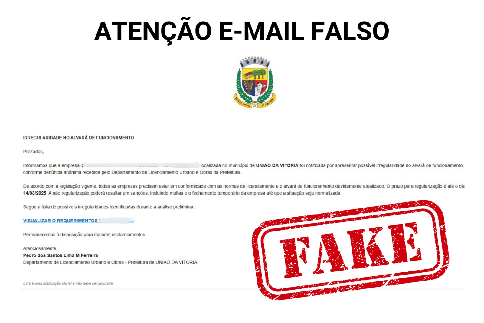 Golpe por E-mail: Prefeitura de União da Vitória alerta população