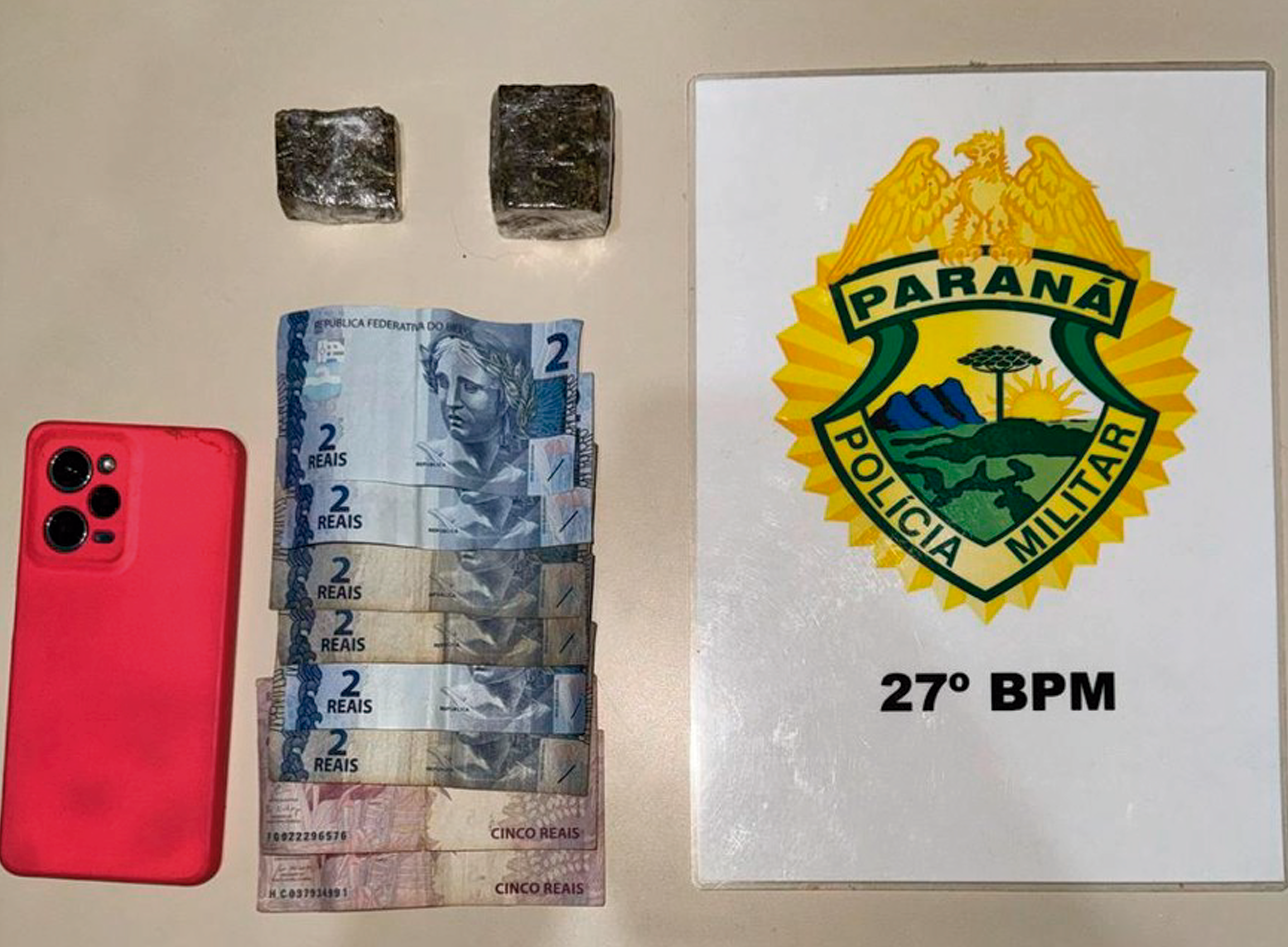 Além da droga, foram encontrados R$ 22,00 em notas trocadas, o que pode indicar a prática de tráfico.