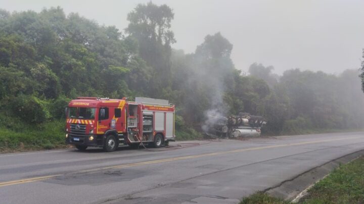 ATENÇÃO! Caminhão carregado com 20 mil litros de combustível que pegou fogo na BR-476 tem placas de Mallet