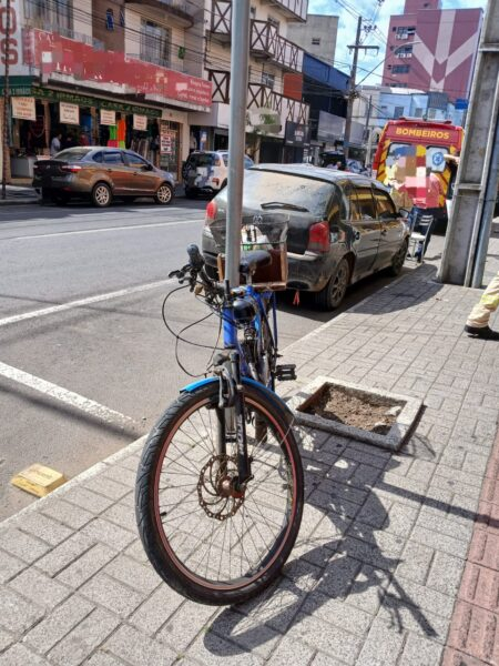 Um acidente entre uma bicicleta motorizada e um automóvel foi registrado na manhã desta segunda-feira, 24 no centro de União da Vitória.