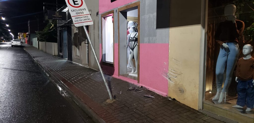 Pouco depois, às 1h58, outro acidente foi registrado por câmeras de segurança de um estabelecimento comercial na Rua Vicente Machado, nas proximidades da esquina com a Avenida João Pessoa. As imagens mostram um Volkswagen Gol colidindo contra a parede de duas lojas, parando sobre uma placa de sinalização.