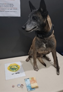No entanto, com o apoio da equipe do canil da PM, a cadela de faro indicou um armário na casa. No local, foi encontrada outra porção de cocaína, escondida dentro de um pacote.