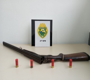 Durante a abordagem e revista do veículo, os policiais encontraram uma espingarda sem numeração aparente, além de um cartucho intacto. A verificação nos sistemas da PM revelou que o condutor não possuía Carteira Nacional de Habilitação (CNH) e que o veículo apresentava pendências documentais. O homem foi preso em flagrante e encaminhado à 4ª Subdivisão Policial. O veículo foi recolhido ao pátio do 27º BPM.