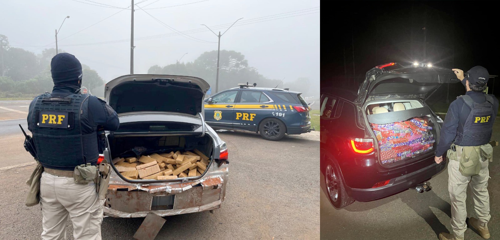 A segunda ocorrência foi registrada por volta das 19 horas, após abordagem a um Jeep Compass, na BR-277, município de Guarapuava (PR). Durante fiscalização, foram encontrados 186,95 quilos de maconha e 15,55 quilos de capulho. Duas mulheres que estavam no veículo foram presas e encaminhadas à Delegacia de Polícia Civil de Guarapuava.