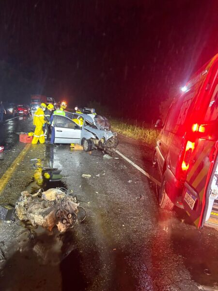 Colisão frontal entre carro e caminhão deixa dois mortos na BR-280 em Mafra