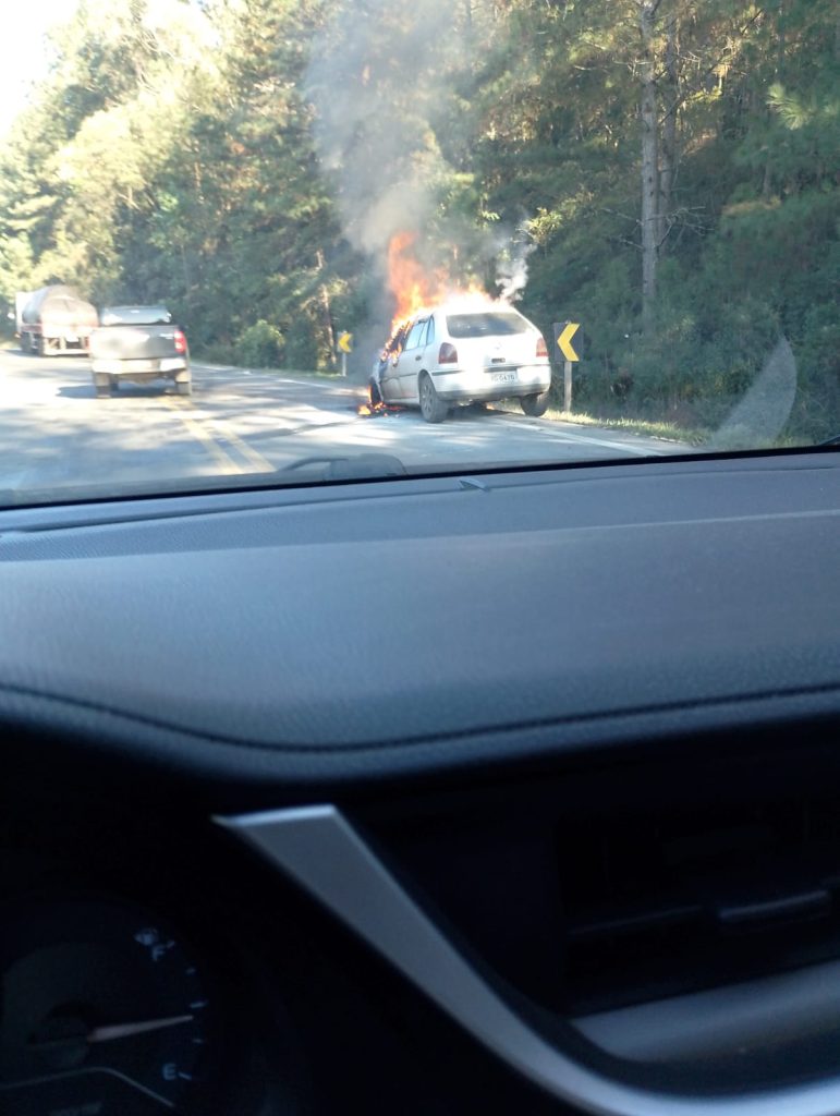 Veículo é destruído por incêndio na BR-153, em Rebouças