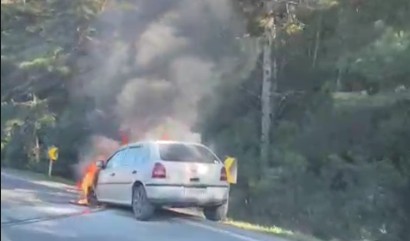 Veículo é destruído por incêndio na BR-153, em Rebouças