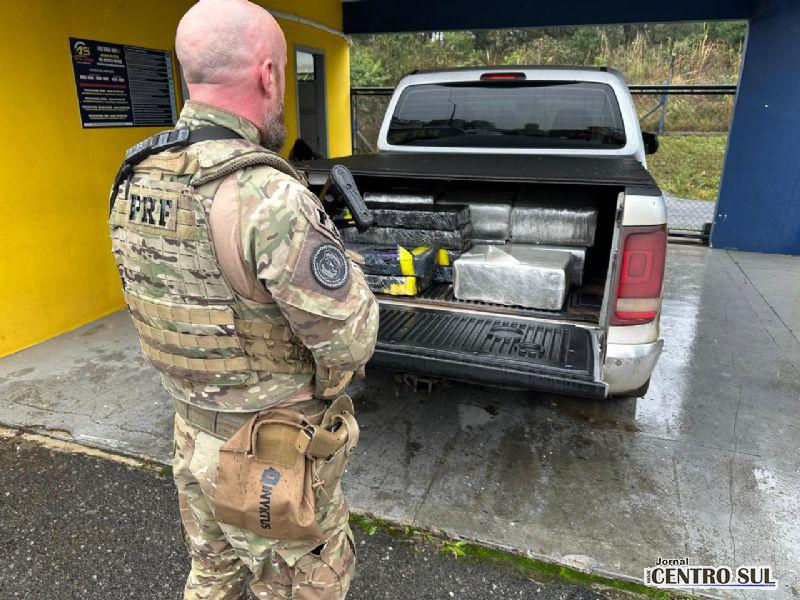 PRF apreende 355 kg de maconha, em caminhonete clonada, após perseguição na BR-277